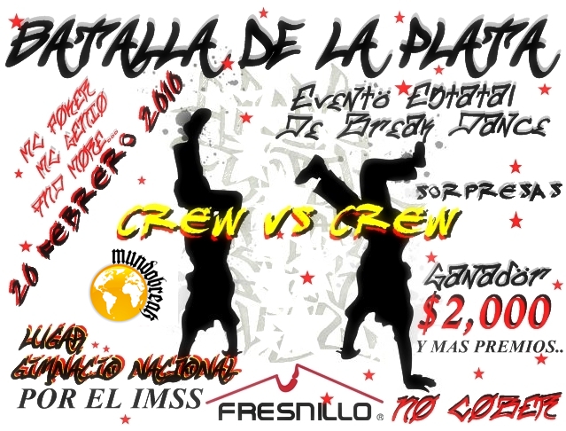 Batalla de la plata – 2010 February 20, 2010 1 min read by MazPlata Archivo de Eventos Fecha: 20 febrero 2010 Hora: ??? Costo: ??? Lugar: Gimnasio nacional Dirección: ??? Previous 1 Minuto de silencio – 2010 Next Eptos One en Saltillo – 2010