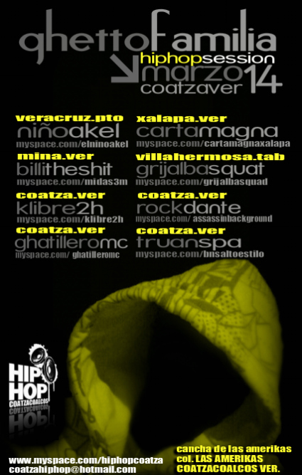 Ghettofamilia – 2010 March 14, 2010 1 min read by MazPlata Archivo de Eventos Fecha: 14 marzo 2010 Hora: ??? Costo: ??? Lugar: Cancha de las Americas Dirección: Col. Las Americas Previous Pintando Atizapán con arte y cultura – 2010 Next Documental: Style Wars | en español