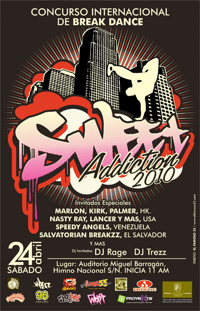 Sweet addiction 2010 April 24, 2010 1 min read by MazPlata Archivo de Eventos Fecha: 24 abril 2010 Hora: 11:00 am Costo: ??? Lugar: Auditorio Miguel Barragán Dirección: Himno Nacional s/n Previous Real Hip-Hop Graffiti+Art – 2010 Next Pasión cultura Hip Hop – 2010