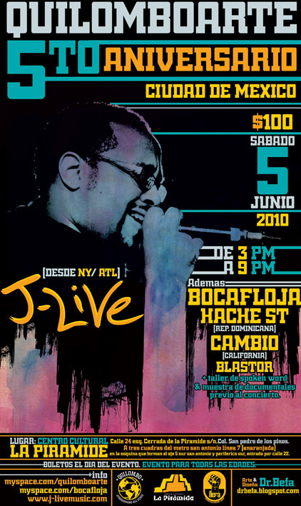 Aquí les dejamos los videos de las actuaciones de SK1, Michelle Ricardo, Blastor, Bocafloja, Cambio, Hache ST y J-Live, en la celebración del 5to aniversario del Quilombo, el pasado 5 de junio dentro de las instalaciones del Centro Cultural la Pirámide.