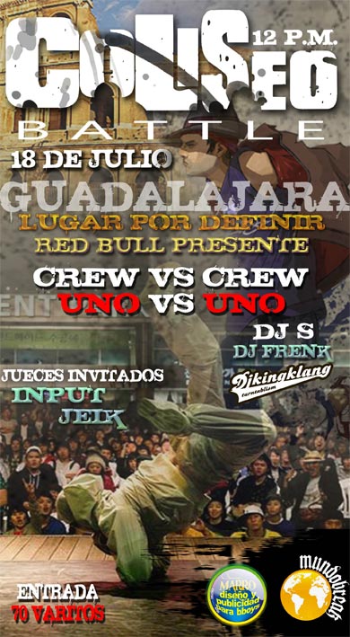 Coliseo Battle – 2010 July 18, 2010 1 min read by MazPlata Archivo de Eventos Fecha: 18 julio 2010 Hora: 12:oo pm Costo: $70 Lugar: ??? Dirección: ??? Previous Tardeada de Rap Julio – 2010 Next Audioparty 2010
