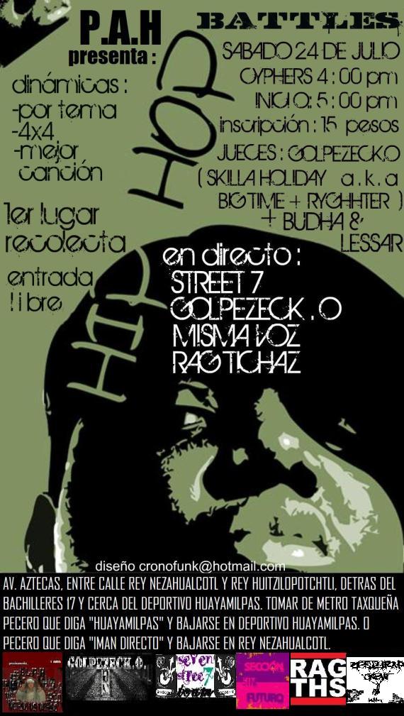 P.A.H. Presenta: July 24, 2010 1 min read by MazPlata Archivo de Eventos Fecha: 24 julio 2010 Hora: 4:00 pm Costo: Entrada libre Lugar: Dirección: Av. Aztecas Previous Descarga: Exile | Radio (Bonus) Next Crazy Steps 2010