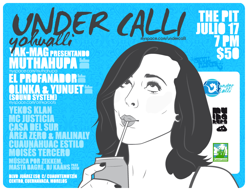 Under calli 2010 July 17, 2010 1 min read by MazPlata Archivo de Eventos Fecha: 17 jukio 2010 Hora: 7:00 pm Costo: $50 Lugar: The Pit Dirección: Blvd. Juarez, Centro de Cuernavaca. Previous Se busca | Rap nacional – 2010 Next Jam of producers – 2010