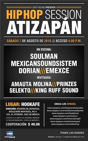 7 Agosto | Hip Hop Session Atizapan – 2010 August 7, 2010 1 min read by Doble-H Archivo de Eventos Fecha: 7 de Agosto 2010 Hora: 4pm Costo: $40 Lugar: Hookape Previous DJ Shiftee | Juggles y dubstep remix Next Rap de maíz – 2010