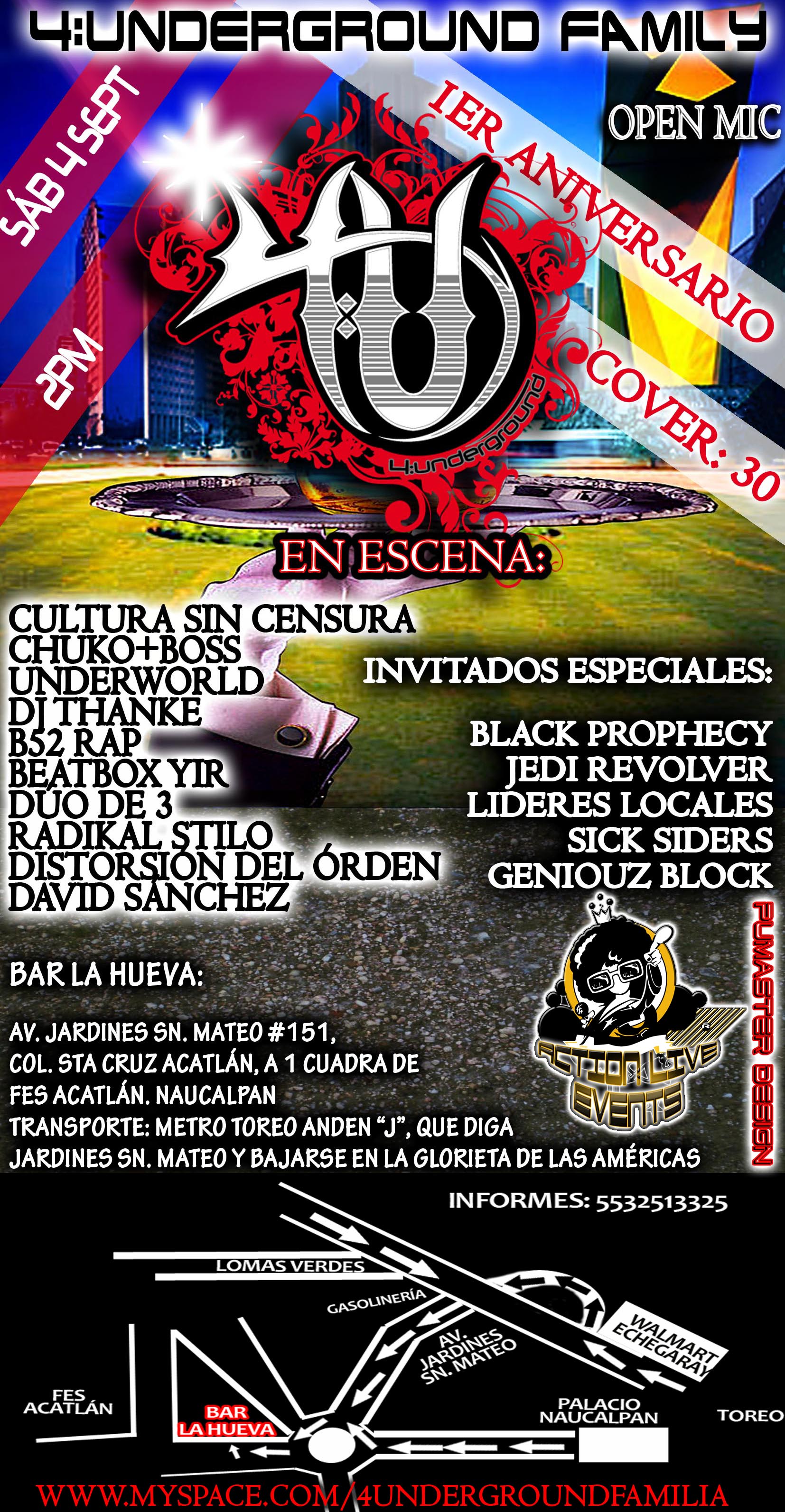 4U | Primer aniversario September 4, 2010 1 min read by MazPlata Archivo de Eventos Previous Battlefortess 3 – 2010 Next 4 Septiembre | Keisa – Sabor y Esencia