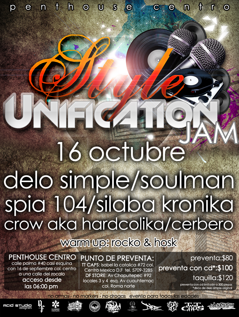 Style Unification Jam | Octubre – 2010 October 16, 2010 1 min read by MazPlata Archivo de Eventos Previous PLOMO ( Eptos Uno, Dabeat Ramirez & Jin Beast ) | Promo #1 Next Kultura sin Censura presenando: El segundo pazón