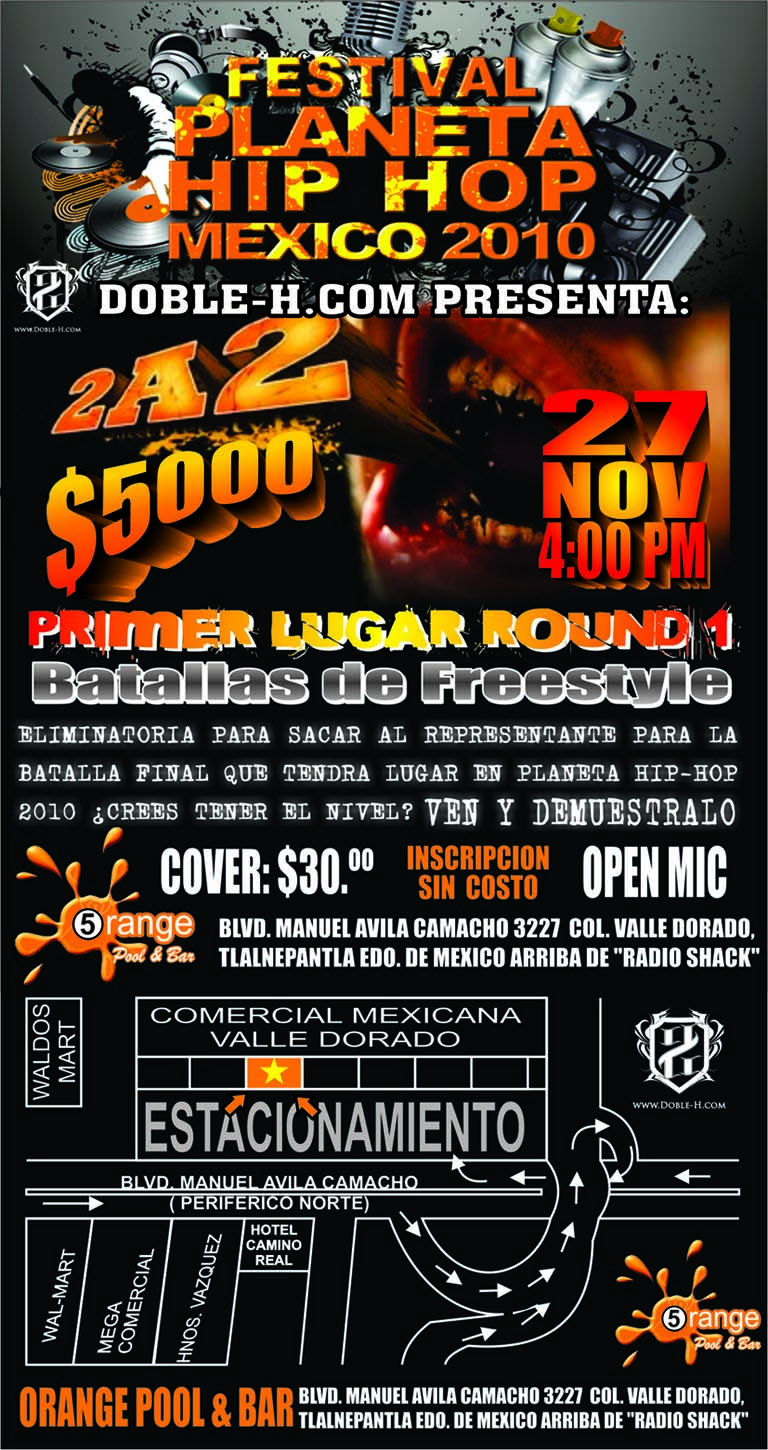 2 a 2 | fase eliminatoria para la gran final November 27, 2010 1 min read by MazPlata Archivo de Eventos Fase eliminatoria para la gran final, inscripciones el día del evento. Las ocho parejas finalistas participaran en la gran final en el Festival Planeta Hip Hop Previous Descarga: Reks | In Between The Lines Vol.2 Mixtape Next Review: The Left | Gas Mask