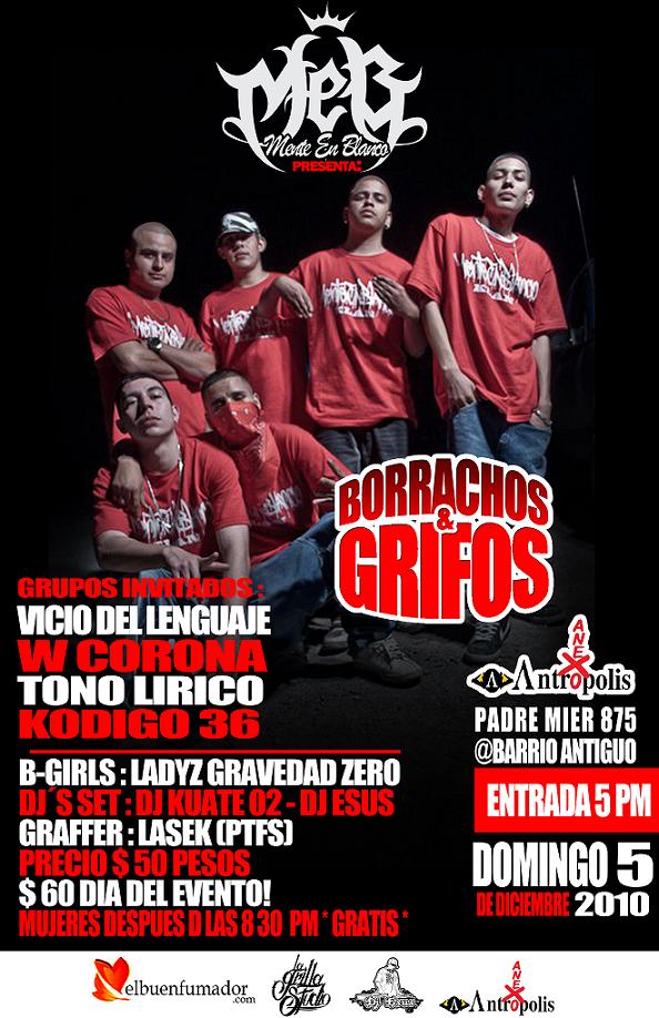 MeB presenta: Borrachos y grifos December 5, 2010 1 min read by MazPlata Archivo de Eventos Previous Petate session 2010 Next Concurso: Obsequiamos 5 boletos para el Festival Planeta Hip Hop