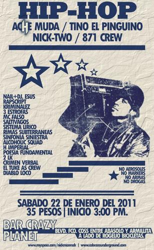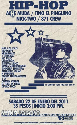 Hip-hop | 22 enero 2011 January 22, 2011 1 min read by MazPlata Archivo de Eventos Previous Dash night club rap | 22 enero 2011 Next Rxnde Akozta | En México D.F. – 2011