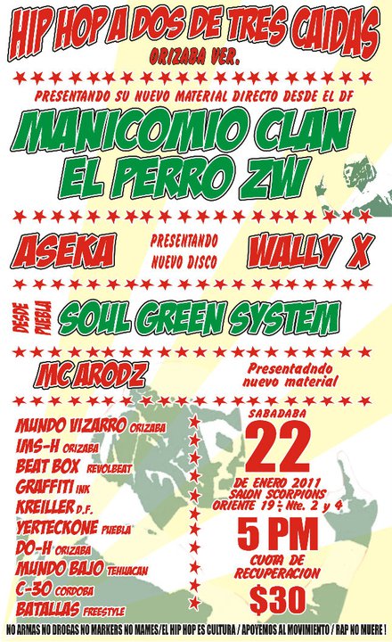 Hip hop a dos de tres caidas | 22 Enero 2011 January 22, 2011 1 min read by MazPlata Archivo de Eventos Previous Descarga: Kooley High | Eastern Standard Time Next Dash night club rap | 22 enero 2011