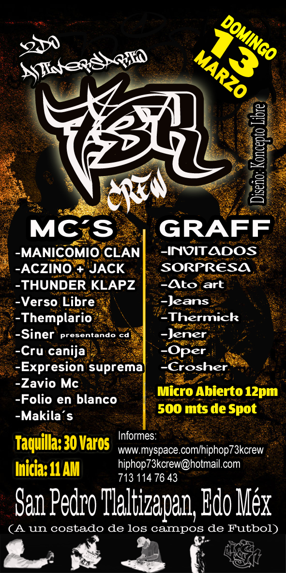 2do aniversario 73K | 13 marzo 2011 March 13, 2011 1 min read by MazPlata Archivo de Eventos, Graffiti Previous Dos son compañia: Skool 77 & Ximbo | 12 marzo 2011 Next Descarga: Metlock | 2707
