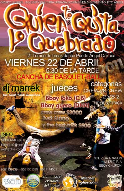 BreakDance | 22 abril 2011 April 22, 2011 1 min read by MazPlata Archivo de Eventos Previous Singles: Hail Mary Mallon (Aesop Rock + Rob Sonic + Big Wiz) | Smock Next Encuentro de profetas | 23 abril 2011