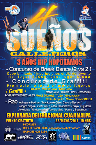 4 Sueños Callejeros | 22 mayo 2011 May 22, 2011 1 min read by MazPlata Archivo de Eventos Previous Evento: Hip Hop en el subterraneo | Metro de la ciudad de México – 2011 Next Descarga: Stic (Of Dead Prez) | The Workout