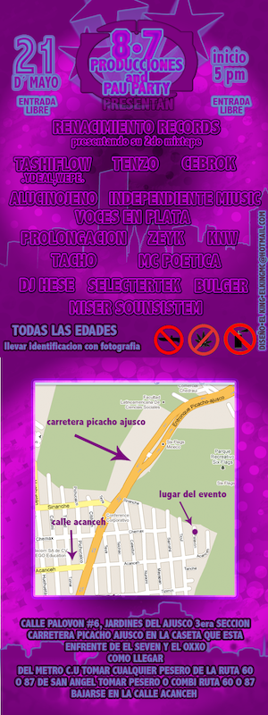 8.7 Producciones presenta | 21 mayo 2011 May 21, 2011 1 min read by MazPlata Archivo de Eventos Previous Movimiento urbano 2011 | 21 mayo 2011 Next Lion orient side & Federación Juvenil presentan | 21 mayo 2011