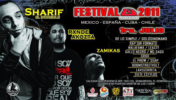 Festival 2011 | Sharif, Rxnde Akozta, Zamikas y más – 1 julio 2011 May 19, 2011 1 min read by MazPlata Archivo de Eventos Previous Artilleria Reck presenta | 28 mayo 2011 Next Descarga: Lex Luthorz | Lex Luthorz Beat Tape 2003-2010