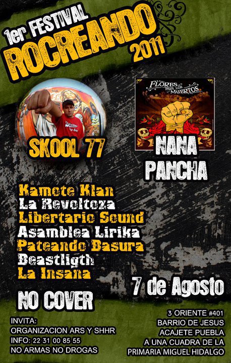 1er Festival Rocreando 2011 | 7 agosto 2011 August 7, 2011 1 min read by MazPlata Archivo de Eventos Previous Festival Audio Visual | 6 agosto 2011 Next Soul Of Dance #4 | 7 agosto 2011