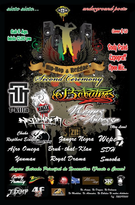 Hip hop & Raggae | 6 agosto 2011 August 6, 2011 1 min read by MazPlata Archivo de Eventos Previous Likuarap | 6 agosto 2011 Next Hip hop mexicano en el Dali | 6 agosto 2011