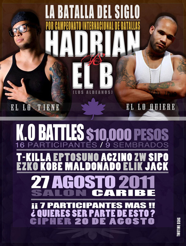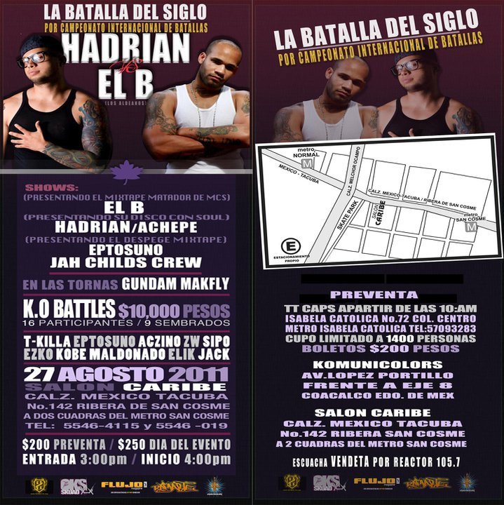 La batalla del siglo | 27 agosto 2011 August 27, 2011 1 min read by MazPlata Archivo de Eventos Previous Evento: Hip Hop en el Subterráneo | 28 agosto 2011, Metro San Lázaro Next Video: Forte Realtà | Haterz prod. Erick Santos