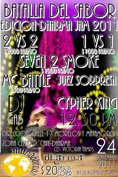 Batalla del Sabor | 24 septiembre 2011 September 24, 2011 1 min read by MazPlata Archivo de Eventos Previous Descarga: Nas | The Found Tapes – Mixtape Next The hip hop rules | 24 septiembre 2011