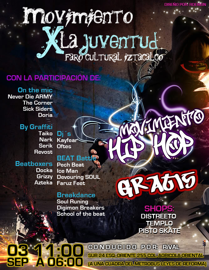 Movimiento X La Juventud | 3 septiembre 2011 September 3, 2011 1 min read by MazPlata Archivo de Eventos Previous Hip Hop Mexicano | 3 septiembre 2011 Next Descarga: Kobe Maldonado | Feats & beefs 2011