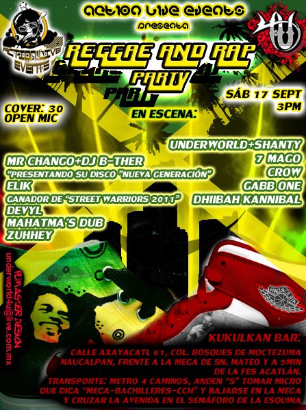 Raggae and Rap Party | 17 septiembre 201 September 17, 2011 1 min read by MazPlata Archivo de Eventos Previous Videos: Hip Hop | Septiembre 2011 Next Descarga: Jahibson Selektah | Reggae vs Rap