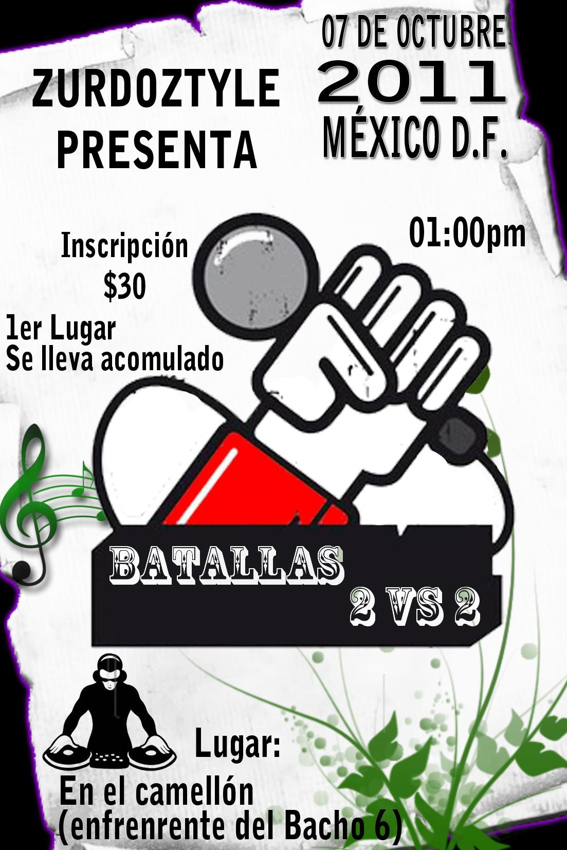 Batallas 2 vs 2 | 7 octubre 2011 October 7, 2011 1 min read by MazPlata Archivo de Eventos Previous Review: Gallo Negro y Suciodedosrápidos | Historia del Ghetto Next Uno de todos sólo uno hip hop | 8 octubre 2011