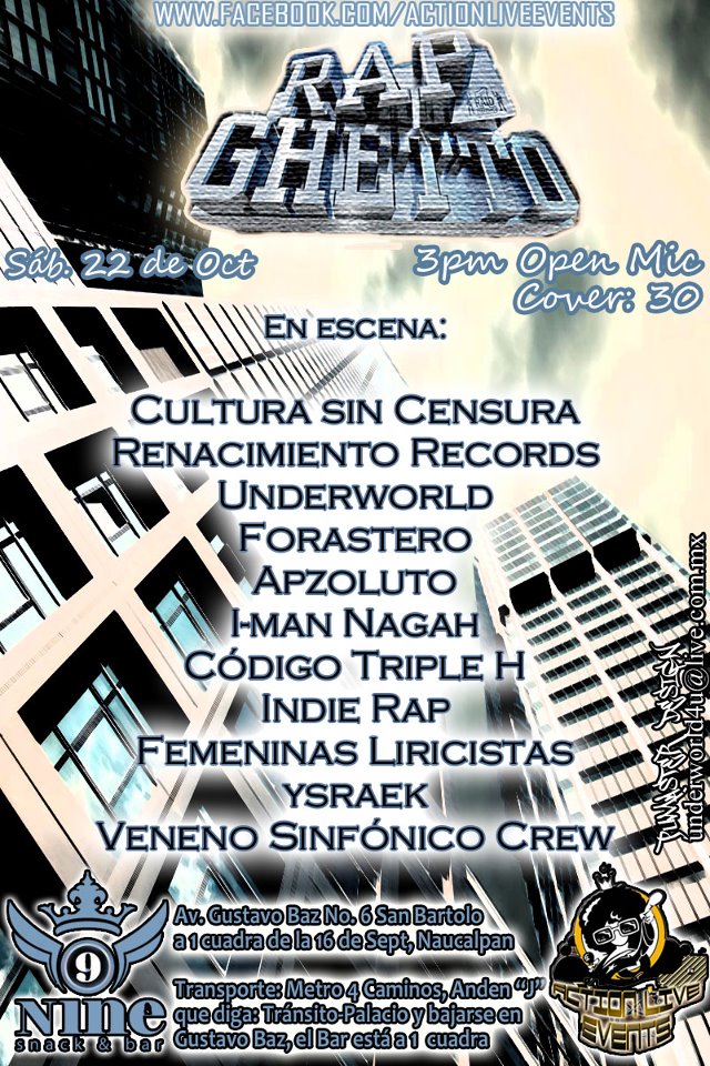 Rap ghetto | 22 octubre 2011 October 22, 2011 1 min read by MazPlata Archivo de Eventos Previous Graffiti: Sego y Ovbal | muro Proteo Next Muthahupa presenta | 22 octubre 2011
