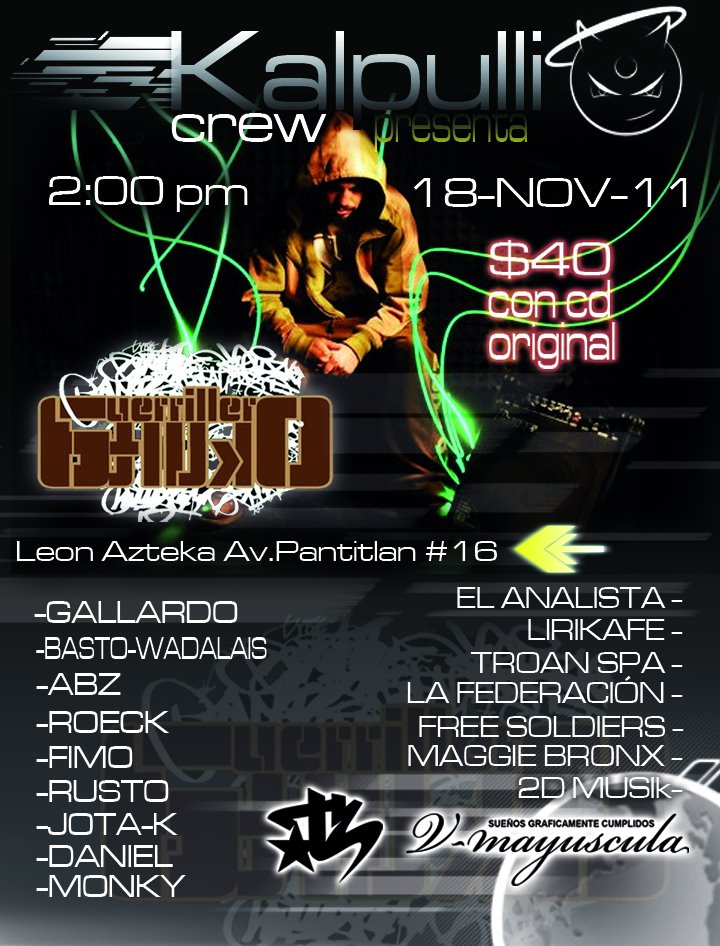 Kalpulli Crew presenta | 18 noviembre 2011 November 18, 2011 1 min read by MazPlata Archivo de Eventos Previous Reggaefarmers Danzhall Crew presenta | 18 noviembre 2011 Next La unión tour | 19 Noviembre 2011
