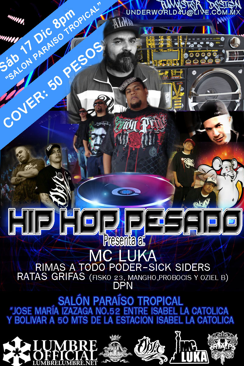 Hip hop pesado presenta | 17 diciembre 2011 December 17, 2011 1 min read by MazPlata Archivo de Eventos Previous Festival Planeta Hip Hop II | 17 diciembre 2011 Next Recomendado: Menuda Coincidencia | El Nefelibata