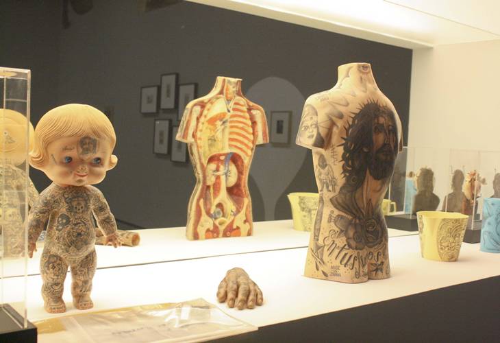 La exposición combina diseños de diversas culturas con innumerables símbolos provenientes de las pandillas urbanas, las historias, la cultura prehispánica y la religión. a obra del Dr. Lakra, son algunos de los trabajos más representativos del artista mexicano que han circulado en importantes galerías del extranjero y que revelan la influencia de importantes ilustradores como José Guadalupe Posada, conocido por sus icónicas imágenes de La Catrina y otras relacionadas con la tradición del Día de Muertos. Los tatuajes forman una parte esencial en la vida y obra del artista, ya que, además de entintar sus imágenes en la piel humana, dibuja sobre una variedad de superficies y objetos inanimados, desde retratos sobre papel hasta murales complejos sobre muros, de muñecas Kewpie a libros vintage.