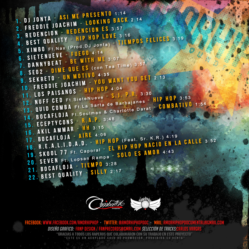Si ya le diste un vistazo al documental de Carlos Vargas, Amor Hip Hop, ahora puedes descargar El soundtrack, el cual contiene temas nuevos, viejos y reinterpretaciones de una colección seleccionada por el mismo Carlos Vargas con temas de gente como Best Quality, Danny Beat, Nuff Ced, Bocafloja, Akil Ammar, Skool 77, Ximbo, Sekreto, Seo 2. y más