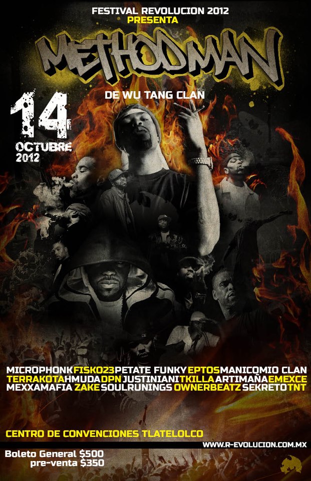 Para toda la banda de los distintos estados de México interesada en adquirir boletos para el R-evolucion Fest el próximo 14 de octubre en el centro de convenciones Tlatelolco. Les avisamos que habrá una preventa especial para que puedan adquirir sus boletos a precio de preventa $250 pesos limitado a 500 boletos. Y para quien este organizando camiones para venir al DF a ver a Method man por favor pónganse en contacto para darle difusión a sus camiones y apartarles sus boletos con precio especial manda tu información a [email protected] con nombre completo, estado, lugares disponibles fecha de salida y regreso.
