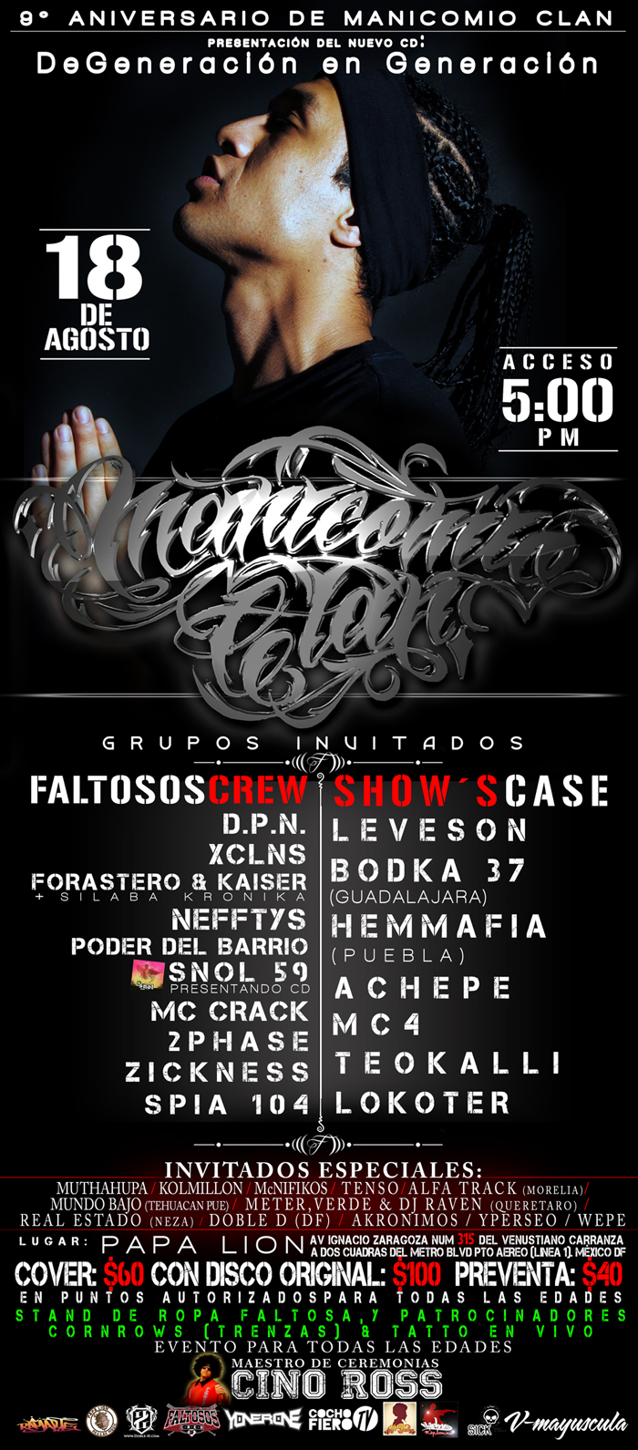 Evento: Manicomio Clan 9no aniversario | Presenta: DeGeneración en Generación