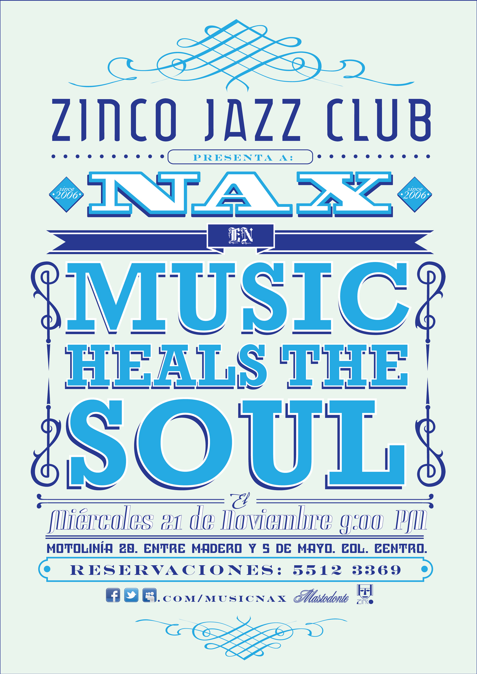 Evento: Nax en Zinco Jazz Club | 21 Noviembre 2012 November 18, 2012 1 min read by MazPlata Eventos Neo soul R&B y más por parte de Nax el próximo 21 de noviembre, presentando algo de su último trabajo Born in blues en el Zinco Jazz Club, Motolinía núm. 20, Centro Histórico, Del. Cuauhtémoc, México, D.F. Reservaciones: 55 12 33 69 Previous Video: Sexion D’assaut | Disque d’or (Concert Bercy live) Next Descarga: Sexion d’Assaut | Concert Bercy live (Audio)