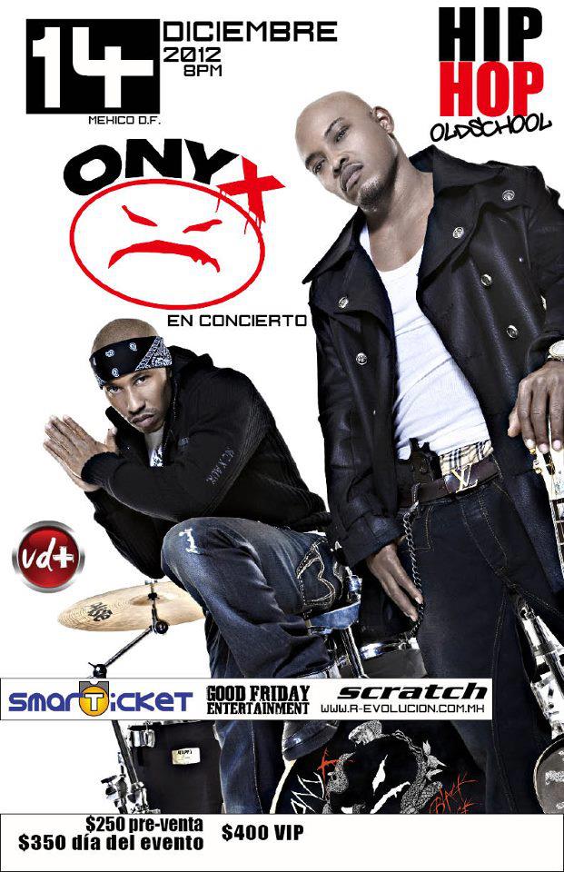 El grupo originario de Queens, New York ONYX. Con una trayectoria de 23 años, originalmente conformado por FredoStarr, Sticky Fingaz, Sonsee y Big DS. Su estreno musical que los llevo a posicionarse dentro del rap se produjo en 1988 con el single “Ah, And We Do It Like This”. Poco después presentaron su trabajo a Jam Master Jay, dj y productor del grupo Run DMC, permitiéndoles firmar su primer contrato profesional con Def Jam Recordings. En 1993 interpretaron “Judgement Night” junto a la banda neoyorquina de rap metal Biohazard, este tema formaría parte de la banda sonora de la película Los jueces de la noche (1993). Además durante esta época los miembros de Onyx dieron un paso más interpretando papeles en películas como Clockers (1995) de Spike Lee, Dinero para quemar (1995) o Sunset Park. Lecciones para ganar (1996), para la que también interpretaron el tema. “Thangz Changed”.