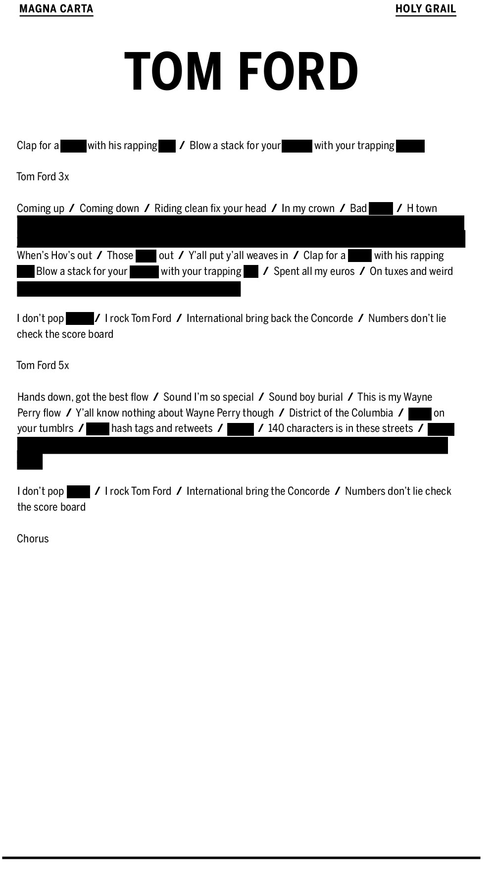 MCHG esta compuesto de 16 tracks en los que se nota a un Jay-Z en forma y con mucho que decir, acompañan en las vocales y raps Rick Ross, Nas, Justin Timberlake, Beyonce, Frank Ocean entre otros, mientras que en la produccion hay gente como Boi-1da, Hit-Boy, Jerome “J-Roc”, Harmon Kyambo, Joshua Marz, Mike Dean, Mike Will Made It, Pharrell Williams, Swizz Beatz, The-Dream, Timbaland, Travis Scott, Vinylz y WondaGurl. Les dejamos los clips, las letras y la descarga, disfruten.