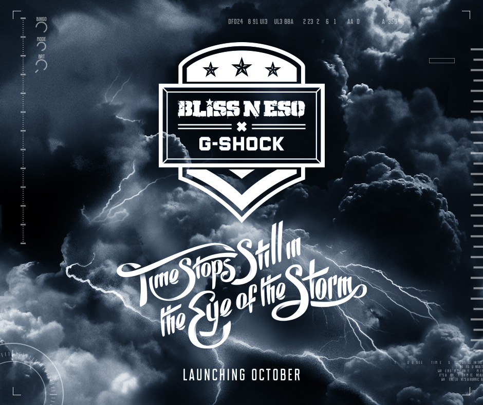 Después de Eminem, Wu-Tang Clan y otros artistas ligados al hip hop, le toco al grupo de australianos, Bliss n Eso, anunciar su participación con la marca G-Shok para lanzar un reloj colaborativo. Partiendo del modelo de reloj DW6900 y el tema Eye of the storm de Bliss n Eso, surge este producto edición limitada a mil piezas disponibles en tiendas y venta en línea a partir del 15 de octubre.