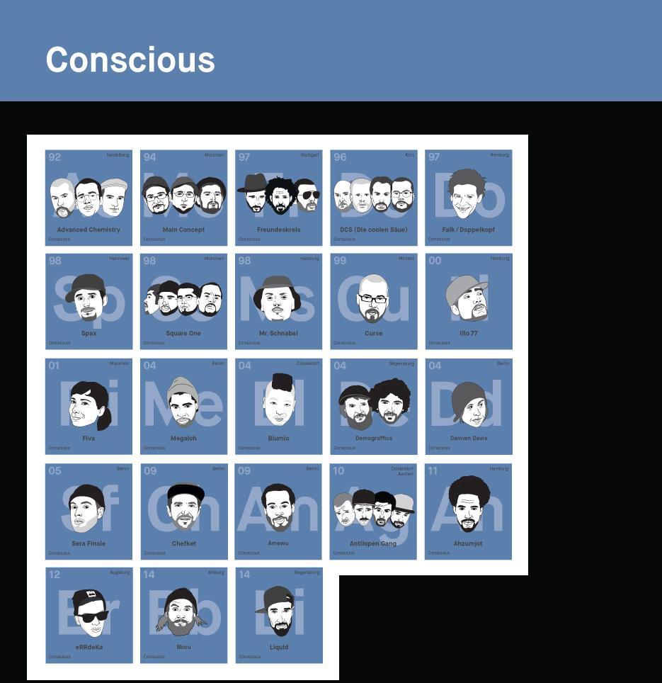 Consciente es un género que estuvo ahí desde los inicios del hip hop en Alemania, y sigue siendo relevante. Desde Advanced Chemistry con “Fremd im eigenen Land”, el mensaje en el rap es lo más importante, es el punto de referencia para establecer el rap consciente.