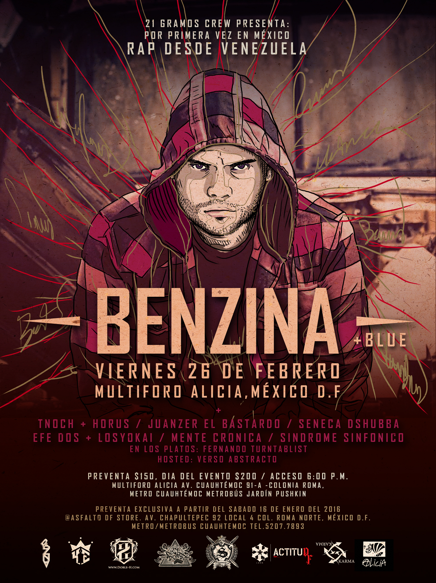 Manuel Rodríguez, mejor conocido en el ámbito del rap como Benzina, es un mc oriundo de Caracas, Venezuela, que se ha labrado su reconocimiento en el rap hispanohablante por su crudo liricismo y su métrica más allá de lo convencional abarcando una amplia temática en sus canciones. Tras haber calado en la juventud venezolana con diversos sencillos tales como “Me enamoré del rap”, “No se omite”, entre otros; en el 2009 son firmados por De La Raíz Recordz, donde produjeron su obra prima Voceros de los sin voz, posteriormente Iluminados en el 2011. La proyección de La Eminencia le permitió a Benzina compartir tarima con reconocidos artistas nacionales y extranjeros en eventos de talla internacional entre las que destacan: Rapsusklei de España (Voces en rebelión, octubre 2009), ToteKing de España (Festival Extremo, enero 2010). De igual manera abrió la brecha para presentarse en los eventos más reconocidos del rap venezolano como el RapLatino Fest y recibir invitaciones para presentaciones en el extranjero como el Festival internacional HIP6 en Medellín, Colombia (2013). En el 2013 Benzina saca su primera producción como solista titulada Guerra, que contó con 15 tracks; marcando un hito para los fanáticos de su música permitiéndole degustar una manera más personal y libre la exponencial creatividad que Benzina le imprime a sus canciones. Tras una breve pausa en su carrera musical, este 2015 Benzina lanza su segunda producción titulada Herpes. Entre sus principales influencias se encuentran Reinaldo Armas, Vico C, Cypress Hill, Eminem, Héctor Lavoe, Ismael Miranda y otros. Además de toda la gente que desde un principio confió en él y le demostró su apoyo solidariamente a través de las redes y presentaciones.