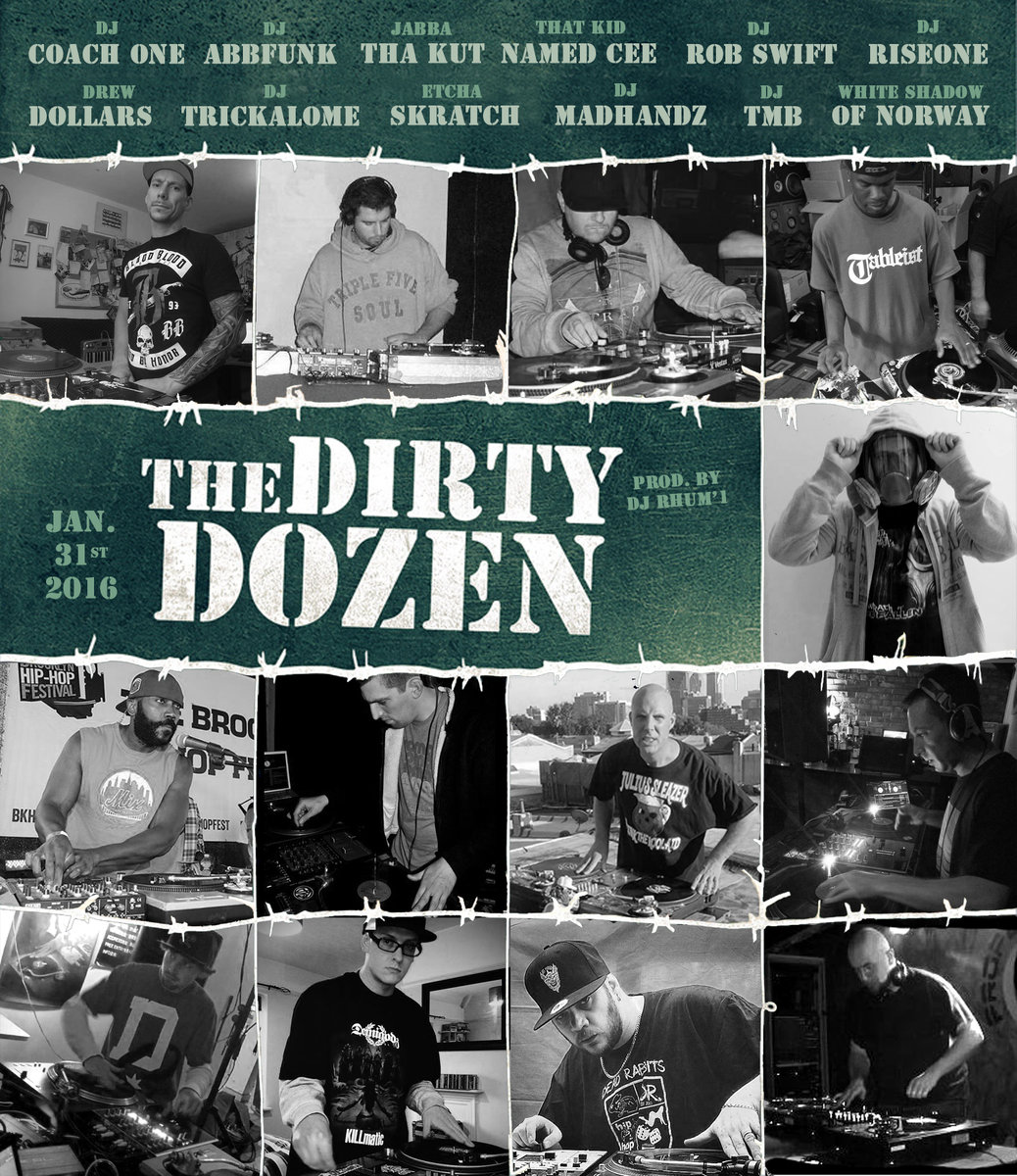 El scratching se hace presente iniciando el año con el atascón de esta dirty dozen de especialistas de platos y mixer entre los que se encuentran DJ Jabba tha Kut, The White Shadow of Norway, DJ Madhandz, DJ Etcha Skratch, DJ Coach One, Drew Dollars, DJ Riseone, That Kid Named Cee, DJ AbbFunk, DJ TMB, DJ Trickalome y DJ Rob Swift, quienes fueron invitados a montarse en el beat de DJ Rhum´1 durante 6 minutos del track que titularon 12 DJs posse cut y del cual nos dejaron un clip promo y su descarga del tema con aporte voluntario.