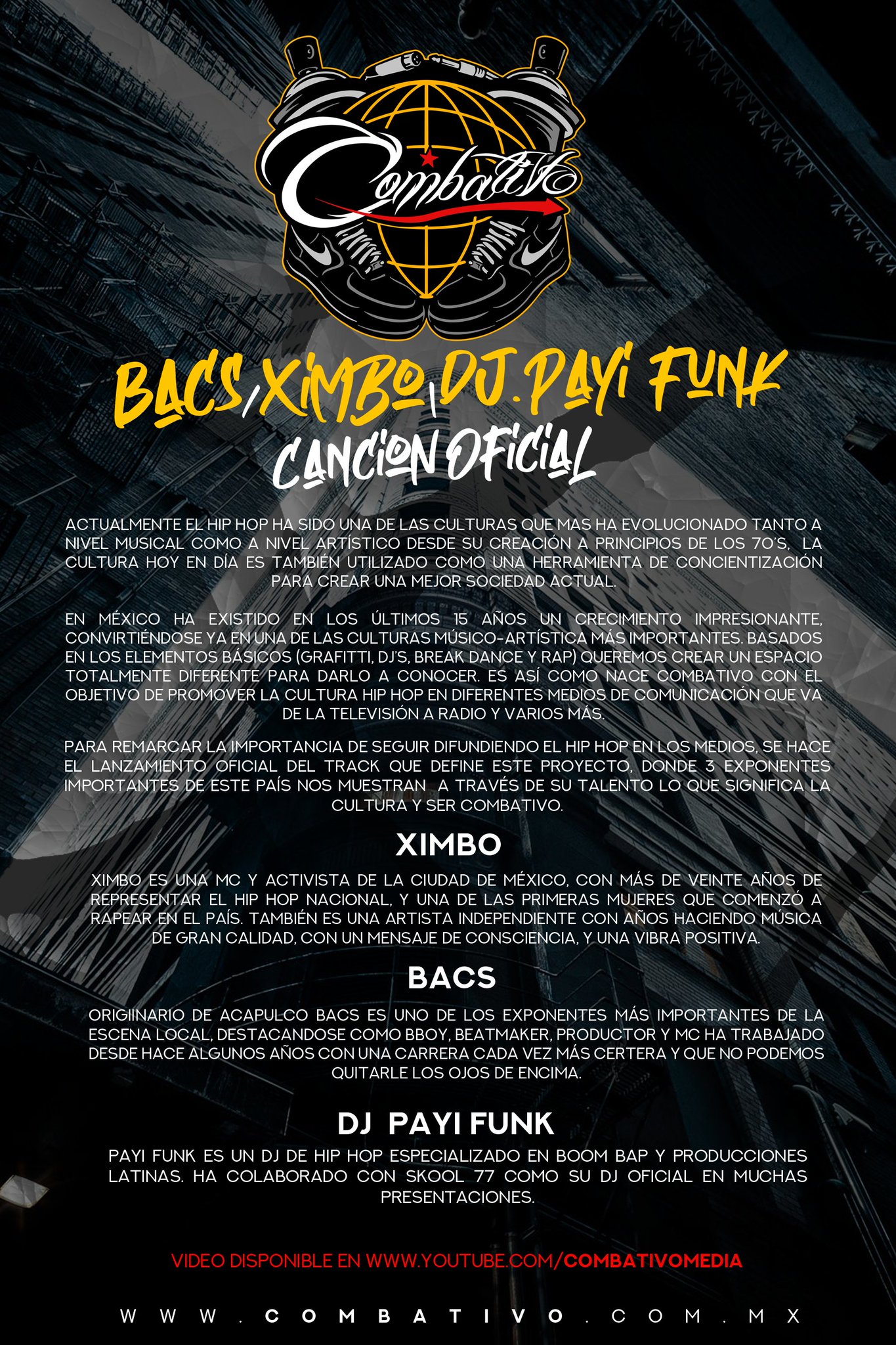 El proyecto guerrerense de Combativo, a casi 15 años de explorar distintas formas de media en radio, televisión e internet, principalmente, el día de hoy nos dejan una muestra de que siguen vigentes y en esta celebración nos presentan un nuevo track para definir parte de su concepto en este tema que se armaron Bacs, Ximbo y Dj Payi Funk y del que nos cuentan lo siguiente.