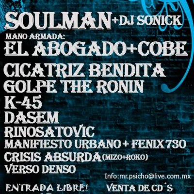 EXPO TUNNING CAR SHOW + EVENTO HIP-HOP | ENTRADA LIBRE Arte Supremo es un colectivo de Hip-Hop dedicado a difundir la cultura a travez de sus cuatro elementos. Esta vez se hace presente con una idea innovadora y son los primeroz en crear un evento fuera de lo acostumbrado añadiendo una presentación de Expo […]