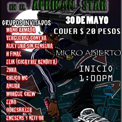 Fecha: 30 mayo 2010 Hora: 1:00 pm Costo: $30 Lugar: African Star Dirección: Calle Escondida, esq. Carmelo Perez