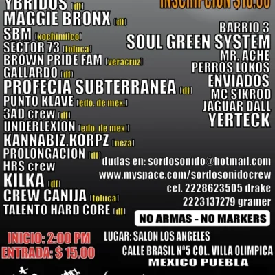 Fecha: 19 junio 2010 Hora: 8:00 pm Costo: $40 Lugar: Rock Zone Bar Dirección: Carretera Picacho-Ajusco