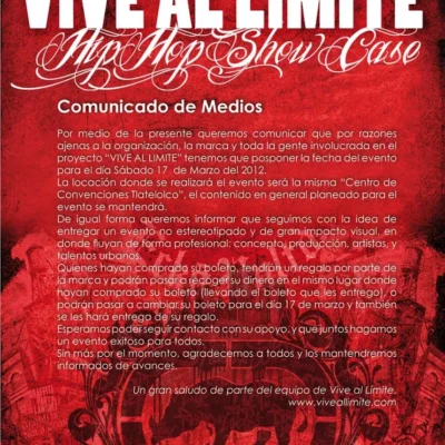 En Agosto del año pasado el colectivo Mamutt en colaboración con Cauce Ciudadano y su proyecto de enseñarle a jovenes con problemas de adicción a ver una salida en el graffiti, invitaron al graffitero M-city a motivar a estos jovenes para erradicar la violencia y vean una salida en este arte como forma de vida. Sin […]