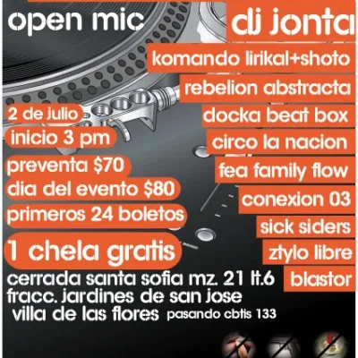 21 de Agosto Pulque Para Dos [6 Norte #1207 Cholula, Puebla] La Comuna Hip Hop presenta a Aniki y Akil Ammar en Pulque Para Dos: *Aniki [Barcelona, España] *Akil Ammar [México D.F.] Además de contar con: *Audry Funk (https://www.facebook.com/audry.diaz) *Blastor (https://www.facebook.com/profile.php?id=100000452905692) *Libertario Sound (https://www.facebook.com/negus.libertario) *Cerdos en tu Azotea (https://www.facebook.com/CerdosEnTuAzotea) *Seven Hope (https://www.myspace.com/elsevenhope) Este 21 de […]