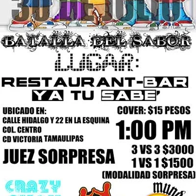 Fecha: 30 julio 2010 Hora: 1:00 pm Costo: $15 Lugar: Ya tu sabe’ Dirección: Calle Hidalgo y 22, Col. Centro