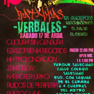 Fecha: 17 abril 2010 Hora: 12:00 pm Costo: evento gratuito Lugar: Parque Saleciano Dirección: Calle Colegio Salesiano
