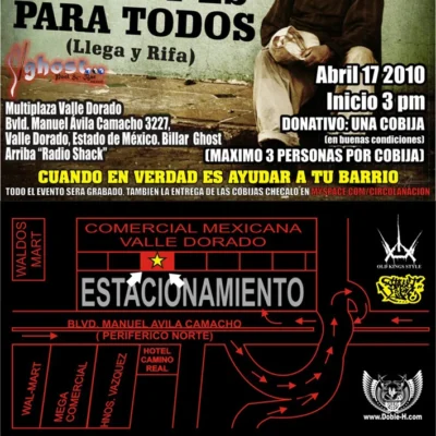 Fecha: 17 abril 2010 Hora: 4:00 pm Costo: ??? Lugar: Larva Dirección: Ocampo no.120, zona centro Si vives en D.F. o area metropolitanta, puedes reservar tu lugar para asistir al evento en gdl. por la modica cantidad de 500 pesos, que incluye el autobus de ida y regreso. informes y reservciones en: perroscallejerosfreestyle@gmal.com