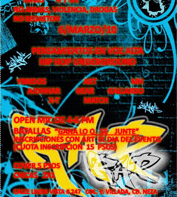 Fecha: 6 marzo 2010 Hora: 10:00 pm Costo: $ 50 Lugar: ??? Dirección: Col. Roma, esq. Colima y Frontera